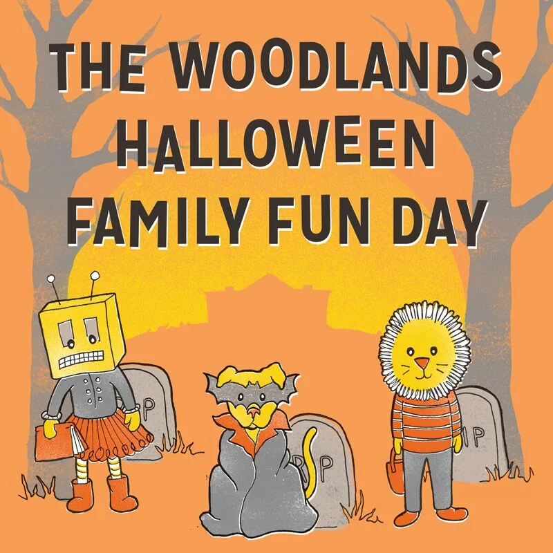 Bring a decked out bicycle, or decorate your ride right here at The Woodlands! We'll have supplies available for you to turn your bike into a spooky Halloween transport vehicle. Hop on your spooky ride at 3:30PM for a derby roll through the cemetery!